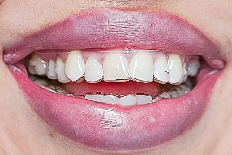 Отже, прийняли рішення щодо лікування за допомогою елайнерів, після чого обійтись мінімальною препарацією зубів для встановлення вінірів, з попередньою приміркою мокапу.