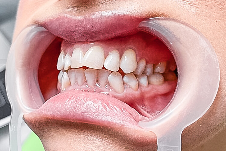 Після місцевого знеболення лікар розпочав обточування зубів. Вирівнювання зубного ряду дозволило виконати препарацію з мінімальним втручанням, а деякі зуби зовсім не препарували.