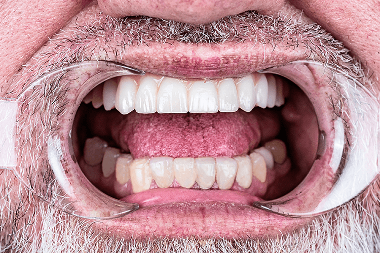До візиту в клініку, пацієнт використовував знімні протези, але вони його не влаштовували в плані комфорту, естетики, а головне — часто ламалися і він був вимушений чекати по 2 тижні на виготовлення нового протезу.