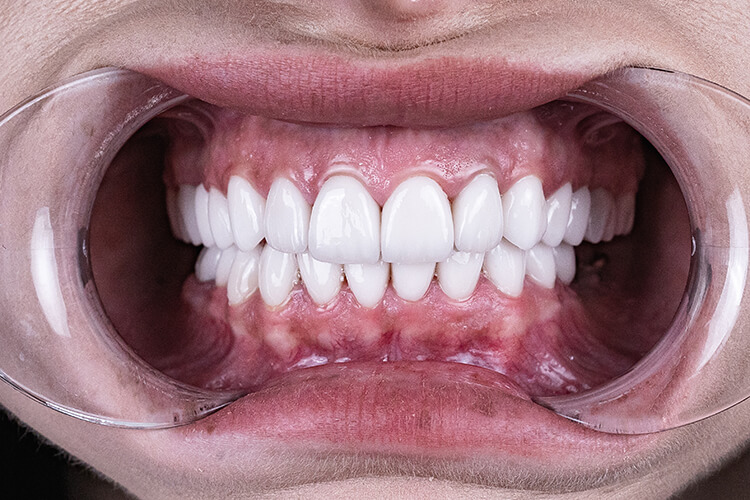Для відновлення відсутніх зубів нижньої щелепи запропонували встановити зубні імпланти (3 одиниці), після чого провести їх протезування керамічними коронками, а відсутні зуби верхньої щелепи відновити за допомогою мостоподібних конструкцій з опорою на сусідні зуби. Узгодили план лікування, але в процесі після установки зубних імплантів, пацієнтка звернулась до лікаря з проханням встановити зубні вініри. Нижче ми розповімо про всі етапи лікування.