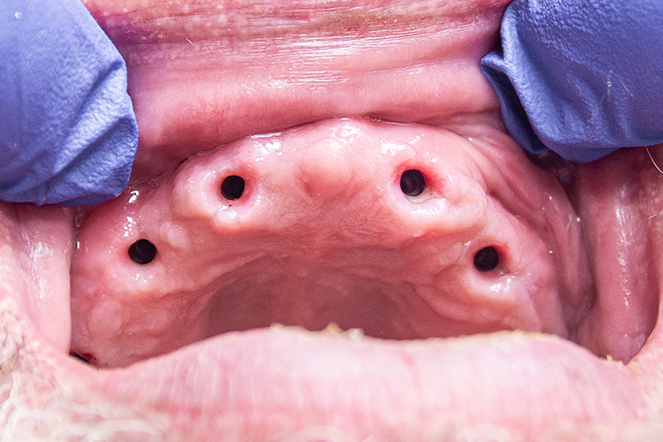 К нам в клинику обратился пациент 1965 года рождения с жалобами на невозможность пережевывать пищу из-за отсутствия зубов на верхней челюсти. В анамнезе пациента повышен уровень сахара в крови и гипертензия (пациент принимает кроверазжижающие препараты на постоянной основе и снижающие давление).