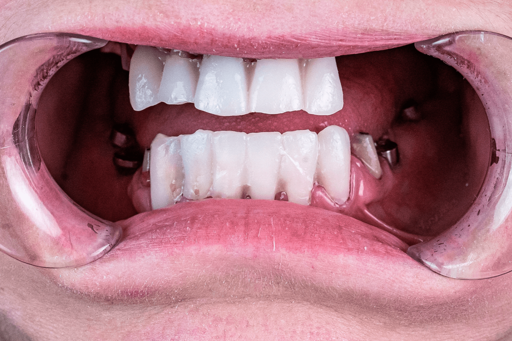 Врач удалил семь зубов, а на место шести из них одномоментно установил зубные импланты. Операция длилась около двух часов, после чего пациентка получила рекомендации по уходу за полостью рта и вернется к продолжению лечения через 3 месяца.