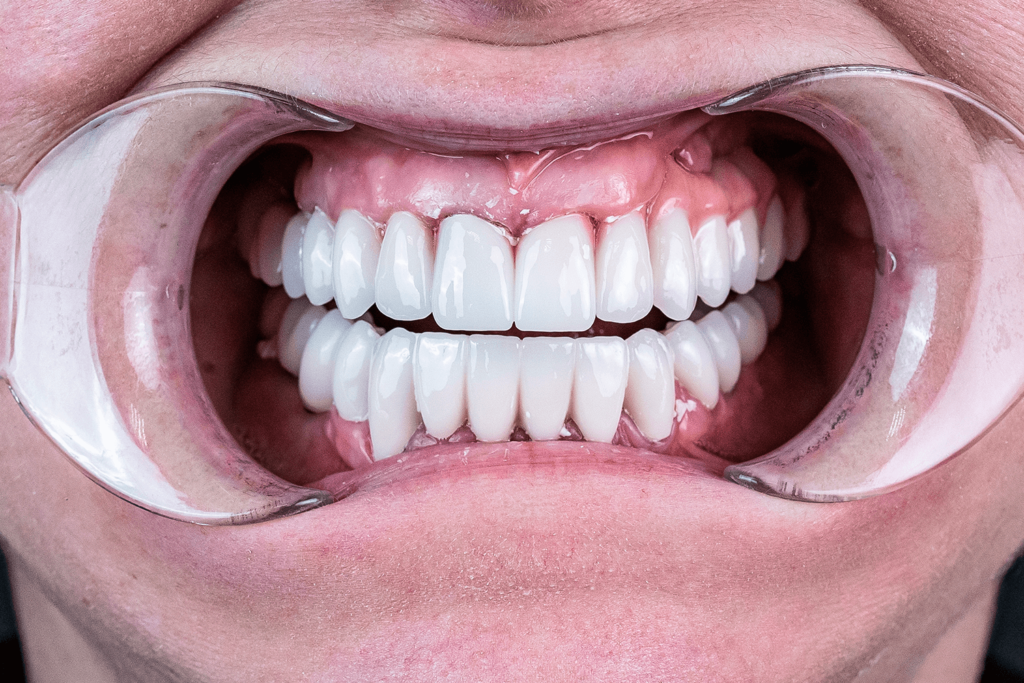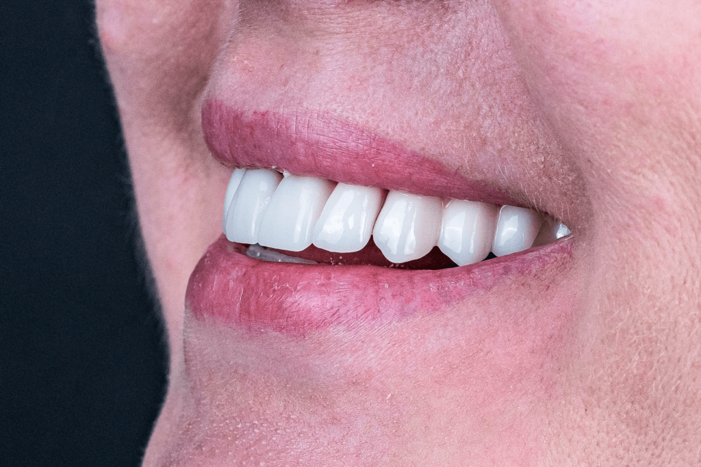 За один визит врач снял mock-up модель и установил мостовидные зубные протезы из диоксида циркония, которые были зафиксированы как на имплантах, так и на опорных зубах. Довольная пациентка покинула клинику, и, надеемся, на этот раз все же будет посещать врача для периодических плановых осмотров.