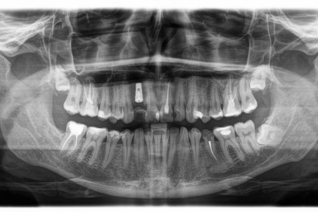 После КТ исследования было принято совместное с пациентом решение об удалении корня зуба и одномоментной установке имплантата SGS. Фактически, восстановление зуба прошло в 1 этап и по времени заняло 1 час.