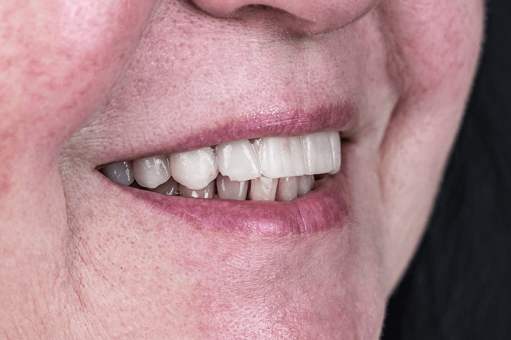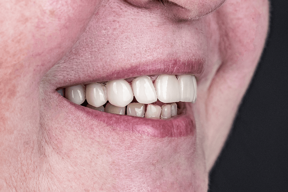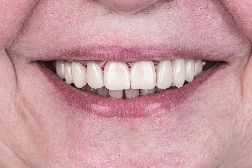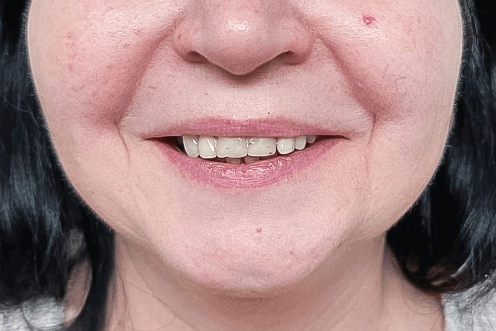 Все лечение длилось 2 дня и прошло в течение двух посещений. В дальнейшем пациентку ждали в клинике через три месяца, но она вернулась через год с новыми пожеланиями относительно своей улыбки. Пациентка жаловалась на неэстетичность верхнего ряда своей улыбки из-за разного цвета и формы зубов. Проблема была вызвана наличием различных ортопедических конструкций, различных материалов, вместе с родными зубами и устаревшими реставрациями. Ее запрос заключался в тотальном высокоэстетичном протезировании зубов с помощью керамики e.max (литий-дисиликатная пресс-керамика). Стоматолог-ортопед принял во внимание пожелания пациентки по цвету, форме, размеру зубов, учел возрастные нарушения прикуса и предложил выполнить работу с применением mock-up модели. Дополнительно, на верхней челюсти зубы 2 и 6 слева нуждались в эндодонтическом лечении. Пациентка согласилась с полным планом лечения, состоявшим из следующих этапов.
