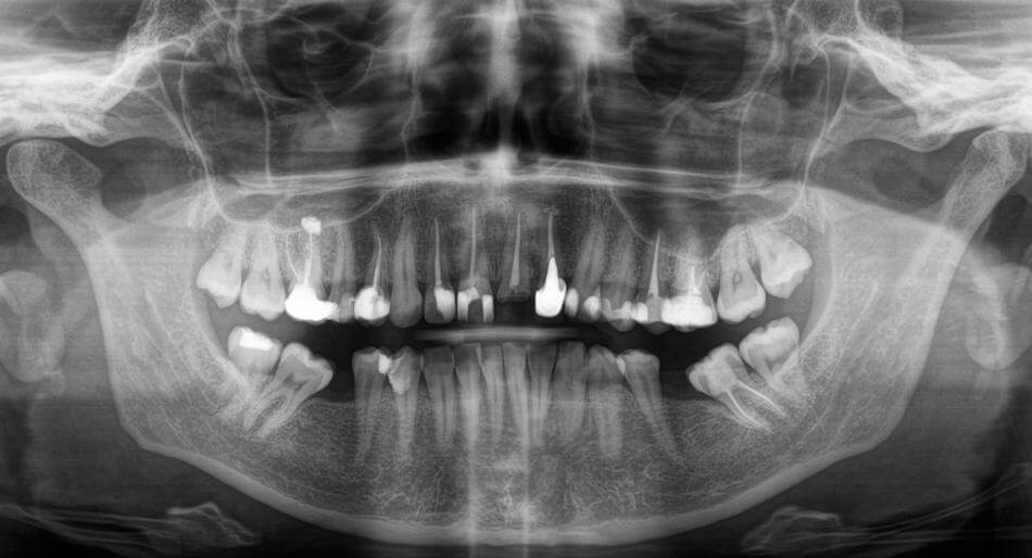 На нижней челюсти отсутствуют шестые зубы, которые нужно заместить имплантами. Поскольку на нижней челюсти будут коронки на импланте, за счет них можно будет поднять прикус и предотвратить стирание зубов в будущем.
