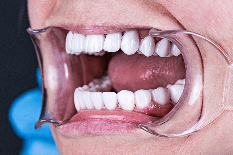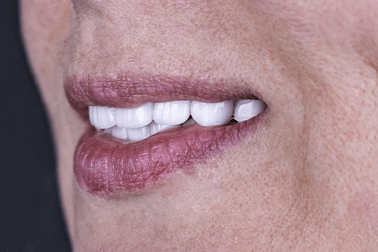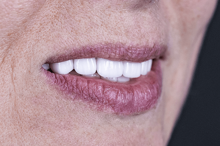 Выбор цвета будущих зубных протезов пришелся на bleach white (белоснежно-белый). Напомним, что родной цвет зубов от «bleach white» отличается в 3-4 оттенка и сделав верхнюю челюсть в таком цвете, мы получим сильный контраст с нижней челюстью.