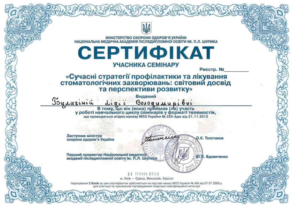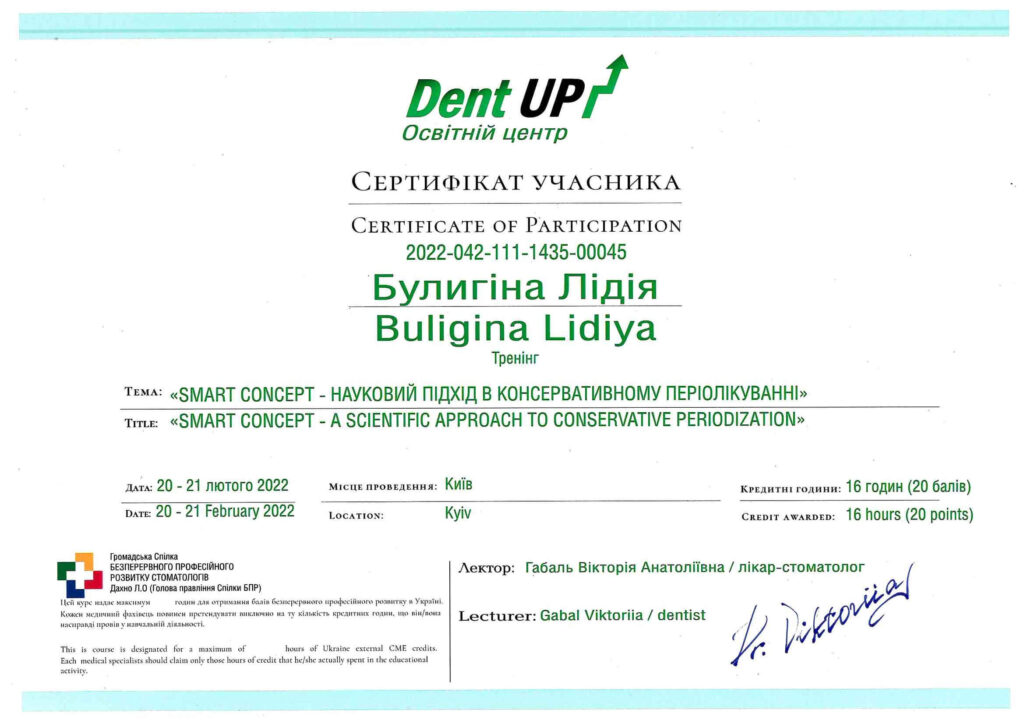 Стала членом Ассоциации врачей-пародонтологов Украины
