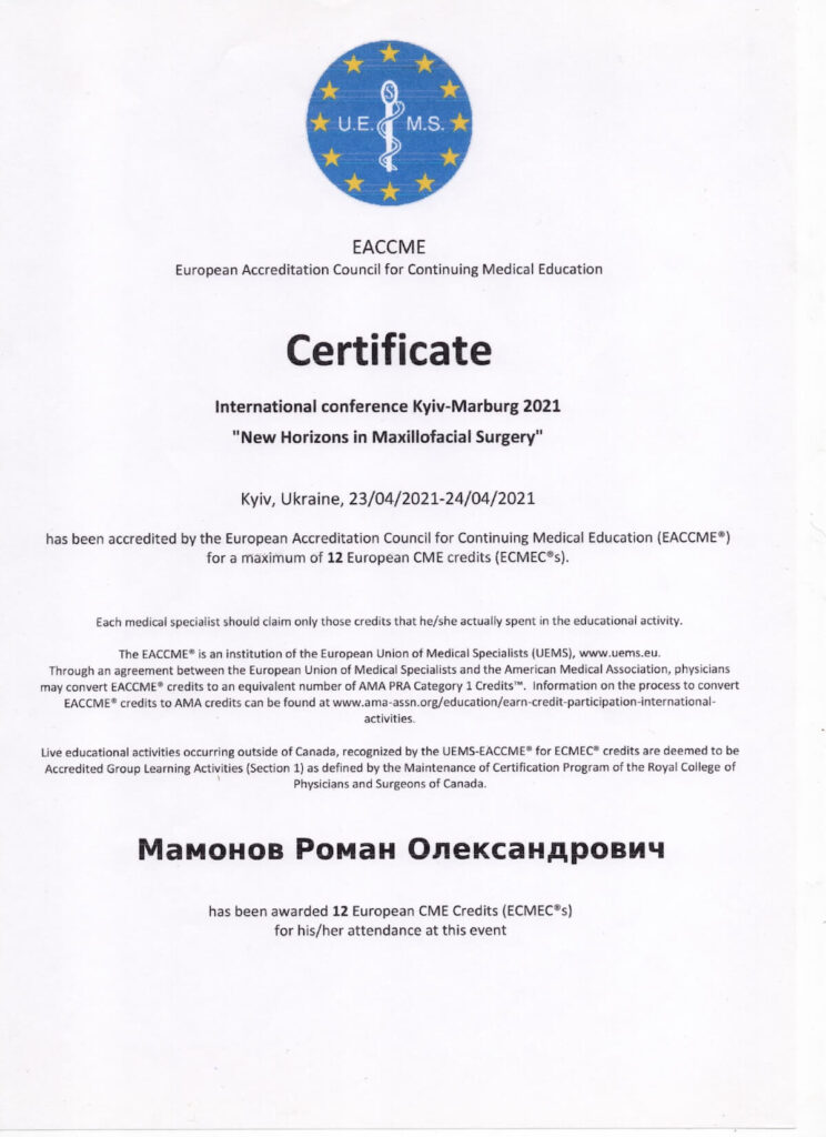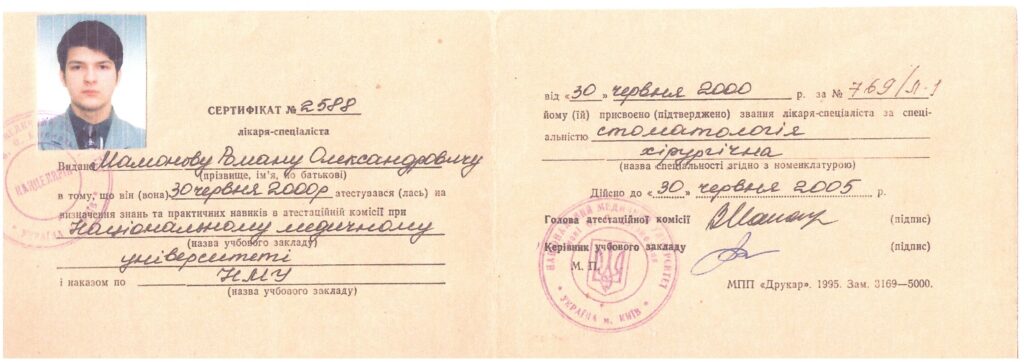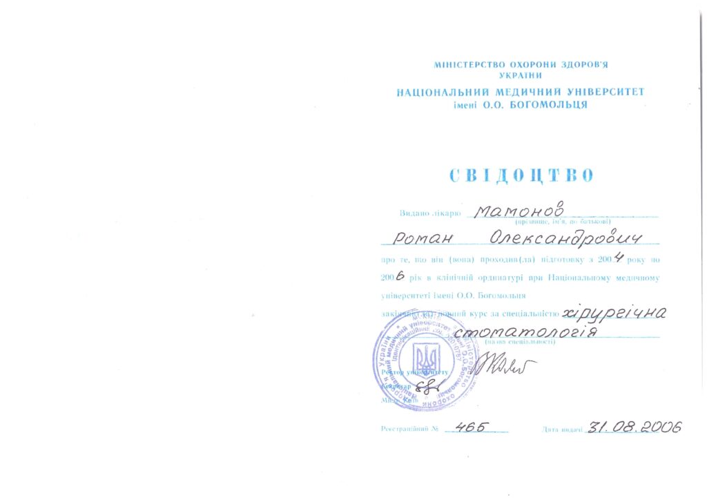 по специальности "Хирургическая стоматология" в медицинском университете им. акад. А. А. Богомольца