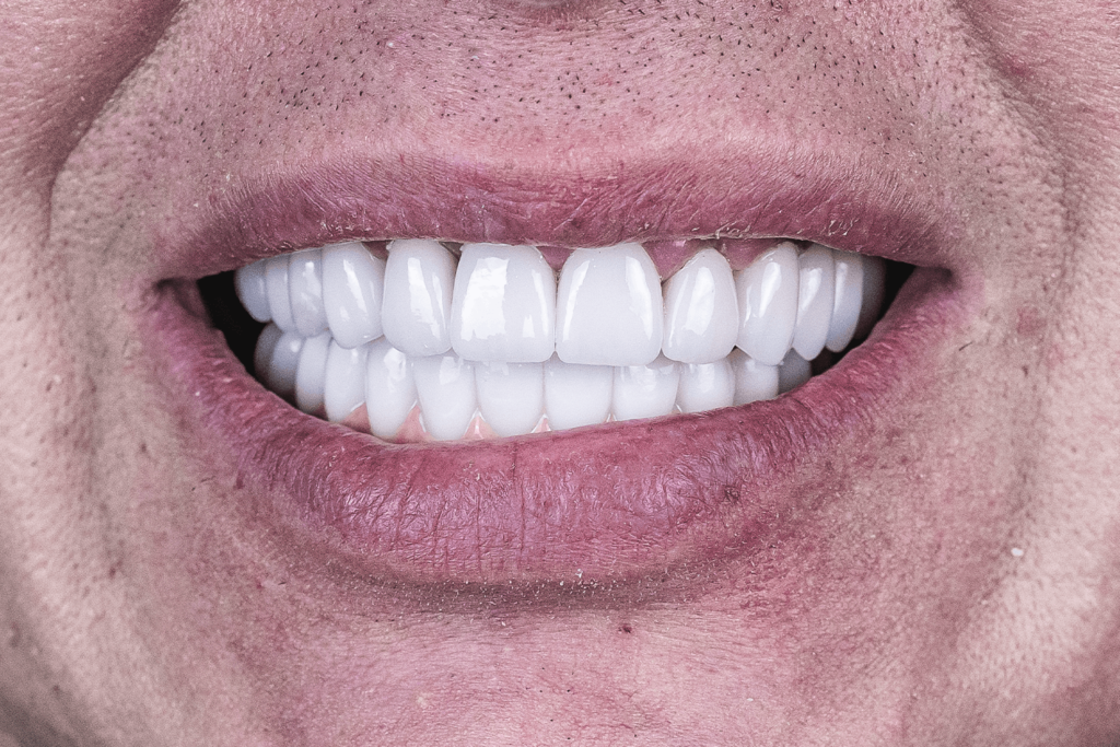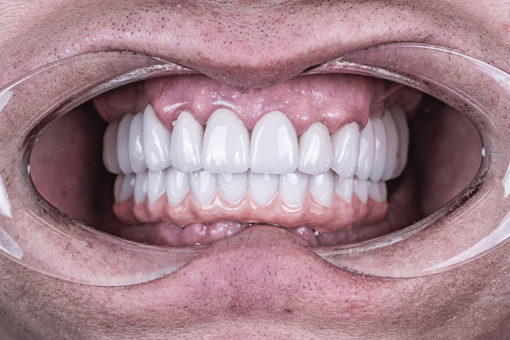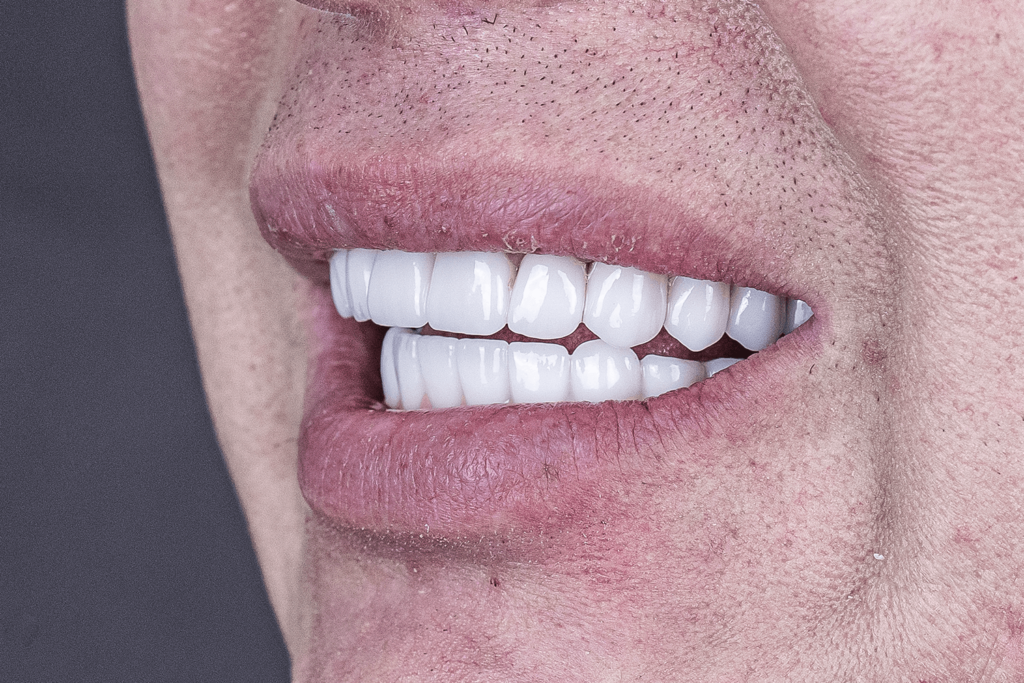В общей сложности лечение длилось 2 месяца и состояло из 7 посещений клиники. Пациенту установили 10 зубных имплантатов Straumann BLT и 24 ортопедические единицы из диоксида циркония в цвете Bleach 2.