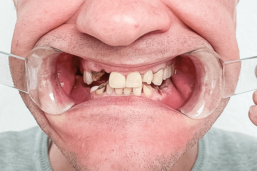 К нам в клинику обратился пациент с жалобой на перелом верхнего второго зуба справа. Кроме того, пациента очень беспокоила сама причина перелома, ведь он не понимал, как такое могло произойти.