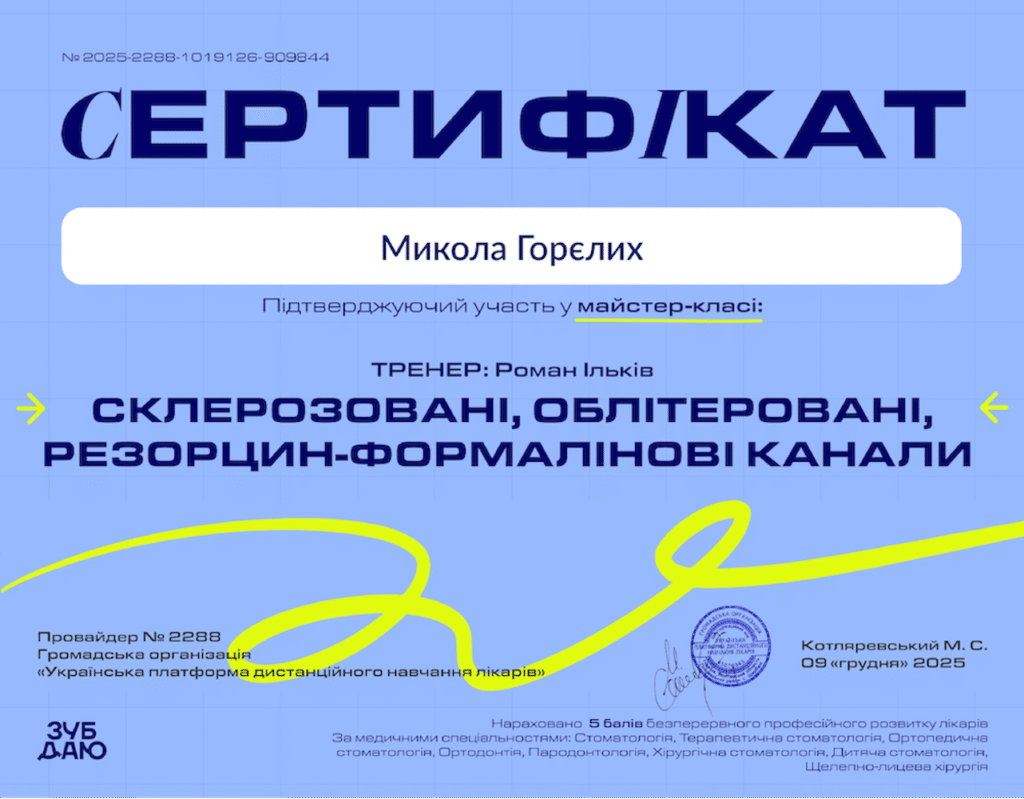 «Вторинна ендодонтія з використанням операційного мікроскопу» м. Львів